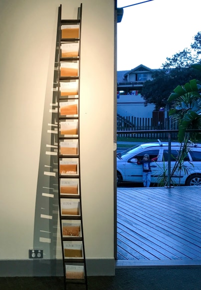 Fiona Fraser Inundation (Flood Gauge), 2017 mixed media, wooden ladder