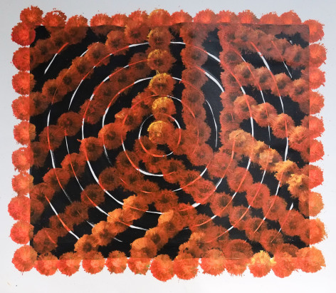 “I paint contemporary indigenous art,” Otis says. “The way I can best explain it is, it’s a broken-down form of traditional symbols and stories that aren’t giving all of it away but just enough for people to understand".