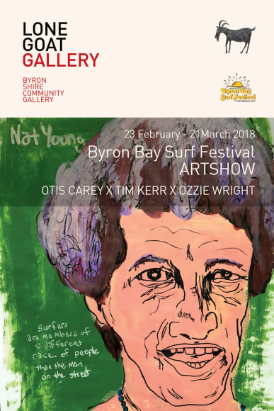 Byron Bay Surf Festival Art Show returns to Lone Goat Gallery for 2018 with a Otis Carey, Tim Kerr and Ozzie Wright, a trio of highly influential artists with wildly individual histories spanning avant-garde surfing, activism, DIY culture, collaborative street murals and hardcore, garage, folk & punk music.