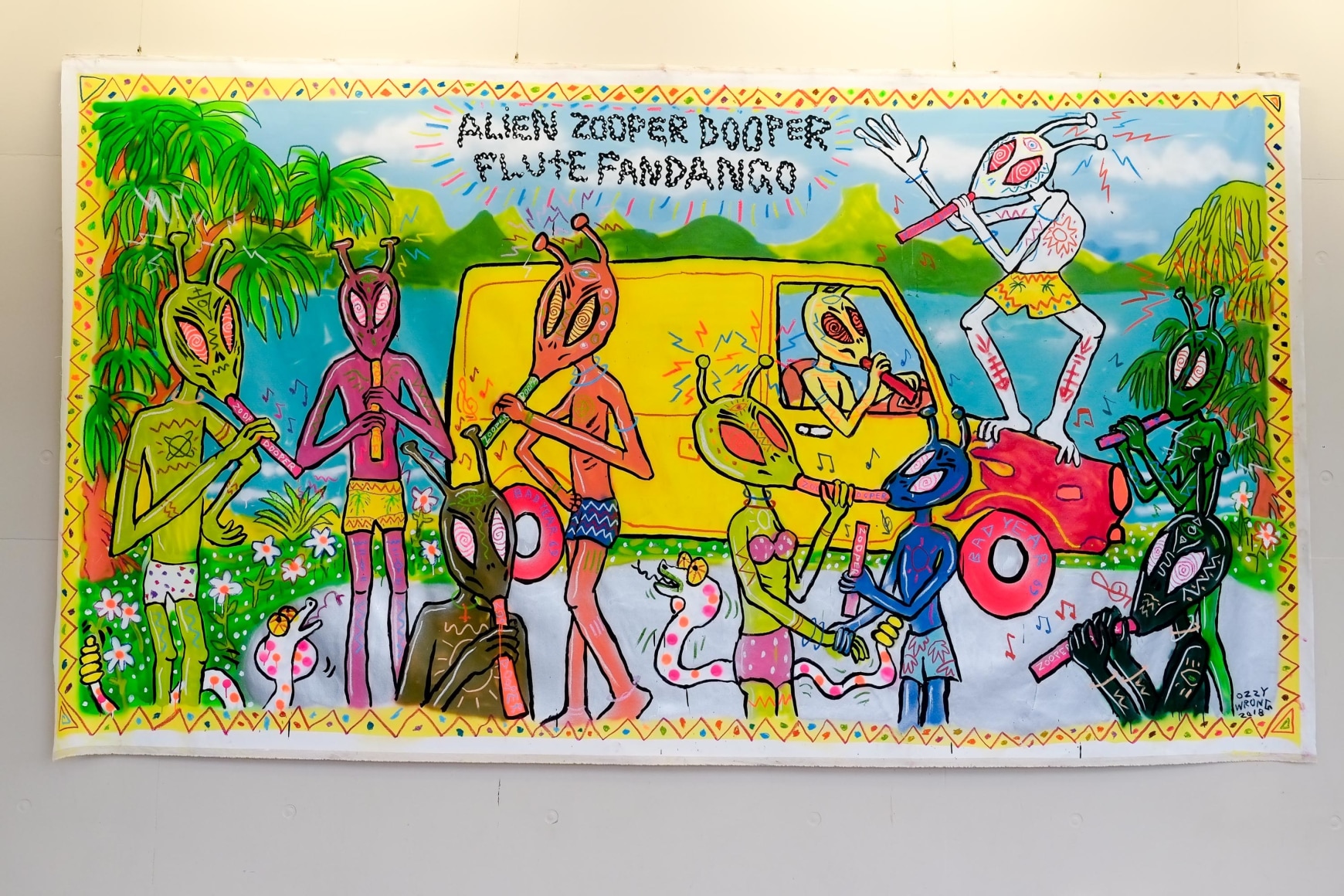Like Egon Schiele, Andy Warhol, Roy Lichtenstein, Carl Sagan, David Suzuki and Banksy in a blender, Ozzie fuses graffiti, pop art, autobiography, cosmic psychedelia, eco-political activism and self-help into an eyeball-searing mix all of his own. Using every media available and painting anything that will stand still long enough, Ozzie's work has featured on innumerable surfboards, record covers, band flyers, a range of ready-to-wear fashion, and in art exhibitions worldwide. Most recently Ozzie staged a sell-out solo show at Byron Bay's own Spot of Genius gallery, alongside collaborative murals up and down the East Coast and across the Pacific in Hawaii.