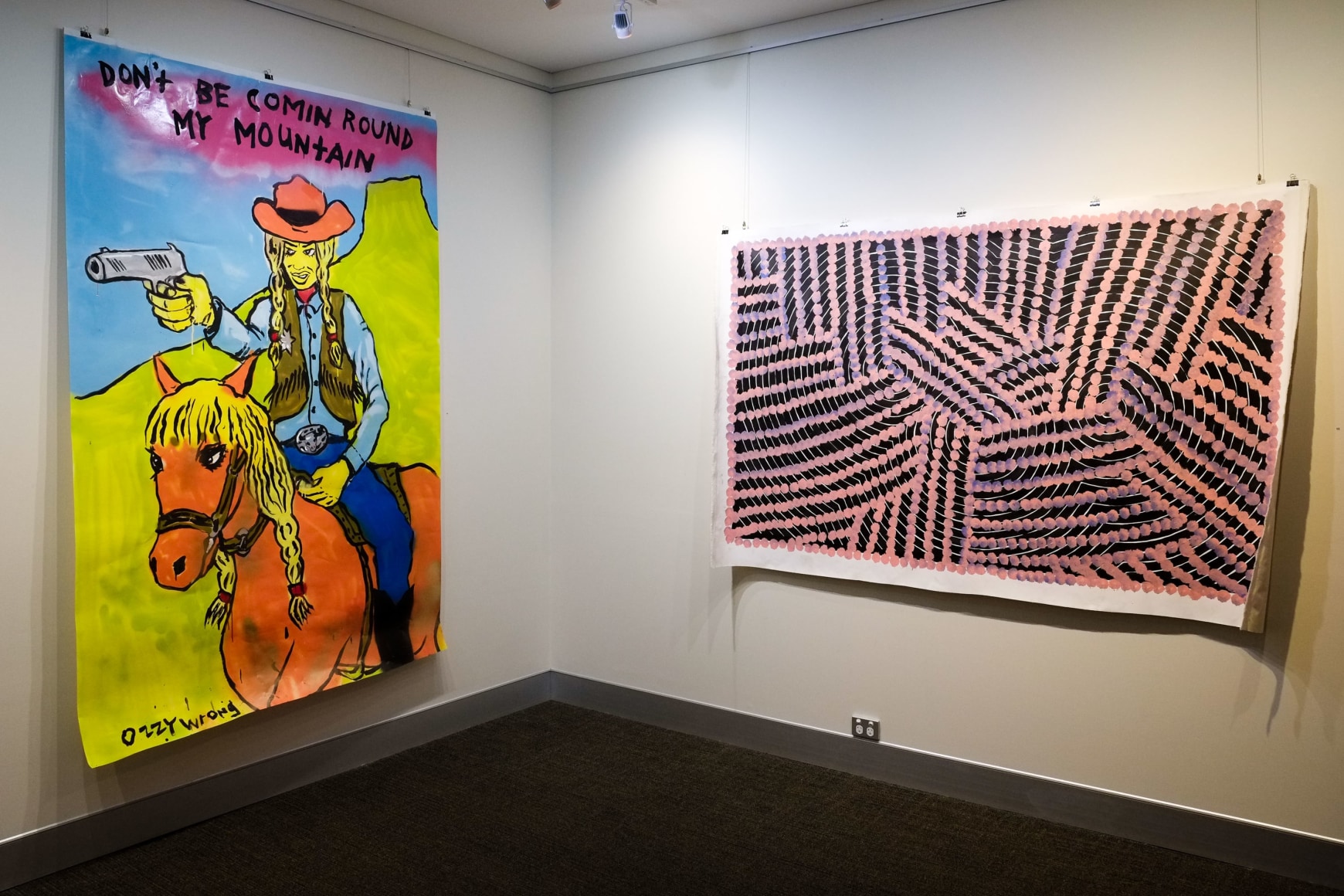 “I paint contemporary indigenous art,” Otis says. “The way I can best explain it is, it’s a broken-down form of traditional symbols and stories that aren’t giving all of it away but just enough for people to understand".
