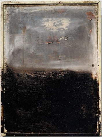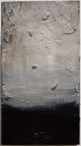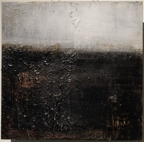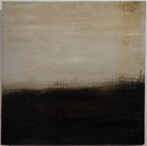 Hymn to the Horizon is a series of works rendered in oil paint, bitumen, dust and debris. Investigating abstract means and the simplicity of the horizontal line to explore surface rendering to access and communicate psychological states connected to lived and imagined terrains.