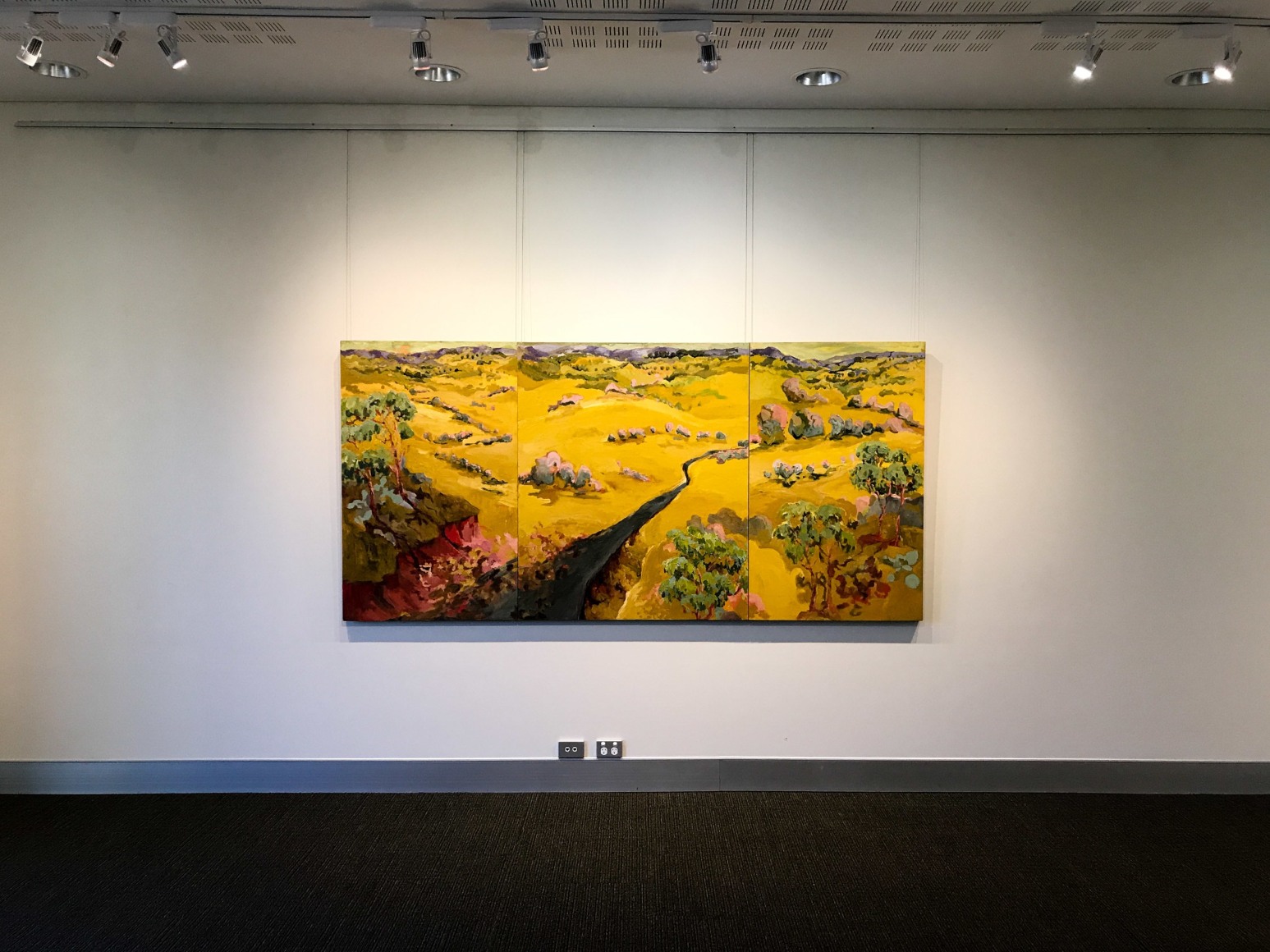 "These paintings search to describe Australian geographical identities, and the constant changes of nature; moving away from the representational, heading towards an embodied form of art making”.