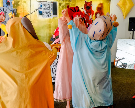 Lone Goat Gallery is proud to present the earth-quaking, Neo-Dada, punk-crafted explosion of Monkey Monkey Shake Shake. MMSS combine music, performance, costume, dance, art, comedy, animation and film - creating their own irresistible mythology, characters and genre-defying world.