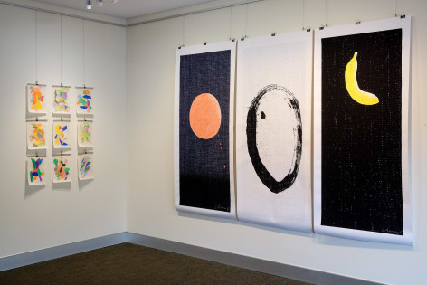 The themes here are change, exile and perhaps, freedom. Change can be seen in the way words (Chinese characters, English script) are transformed into near illegible marks to become abstract expressions, a different kind of sign with only subjective readings. How ink landscapes become groupings of bright coloured shapes. The way digital technology can marry with analogue processes to create a contemporary Chinese scroll. Exile is the great theme of the last hundred and some years and enough has been said about it. I mention exile only because it is undeniable.