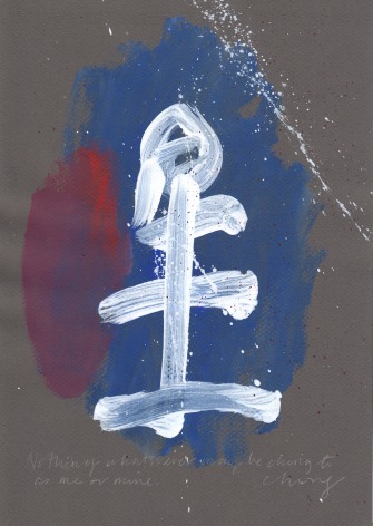 In these works from several ongoing series I drew from the deep well of Chinese art traditions. Useful concepts: the understanding of art’s intangible qualities — its “spirit” — codified 1500 years ago as the most important part of art. The ancient abstractions of Chinese calligraphy, and the deployment of the void as integral to the image. Mark making that speaks of distinctive individuals.