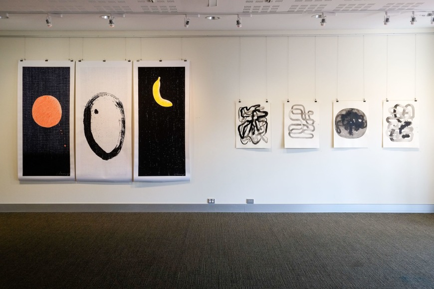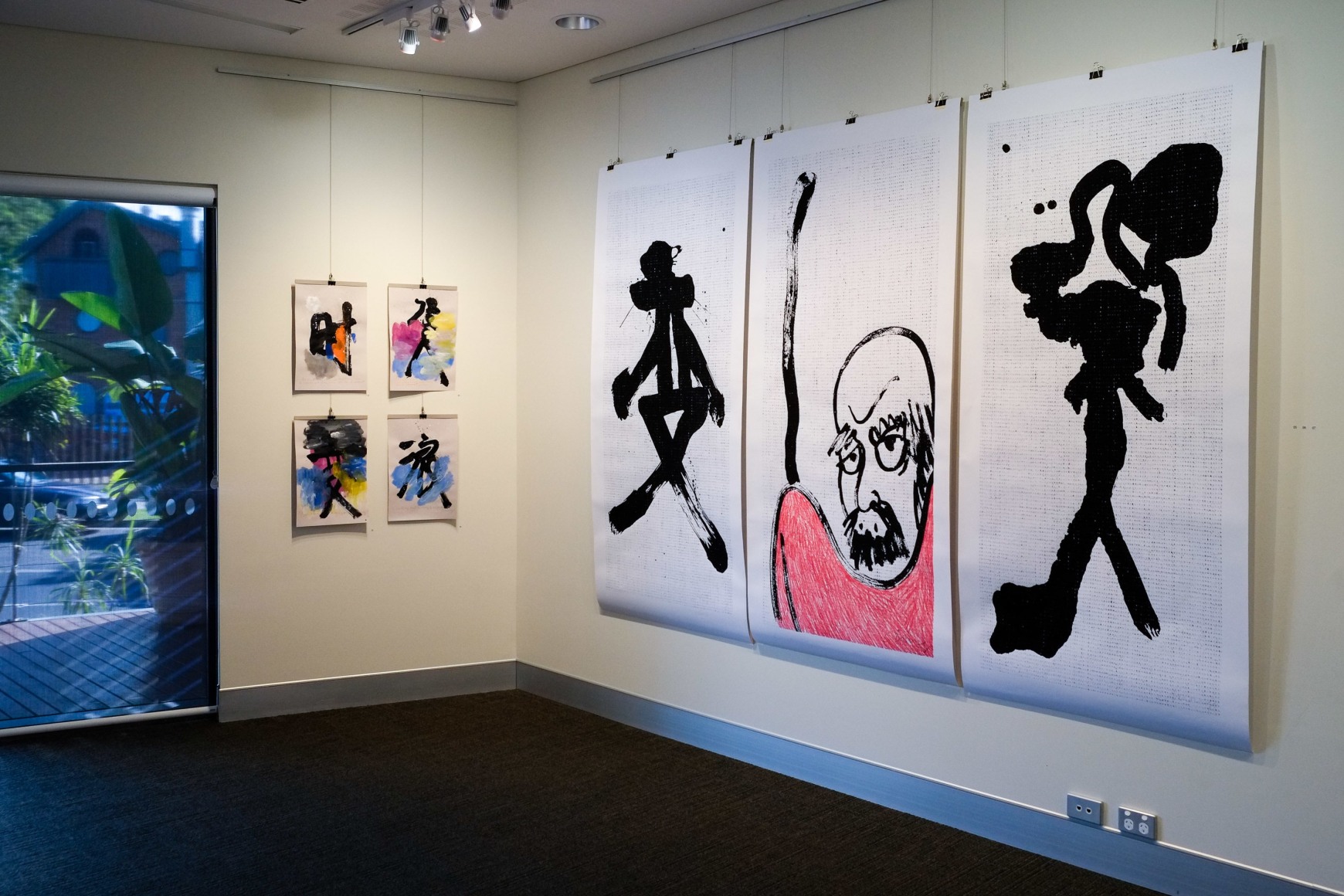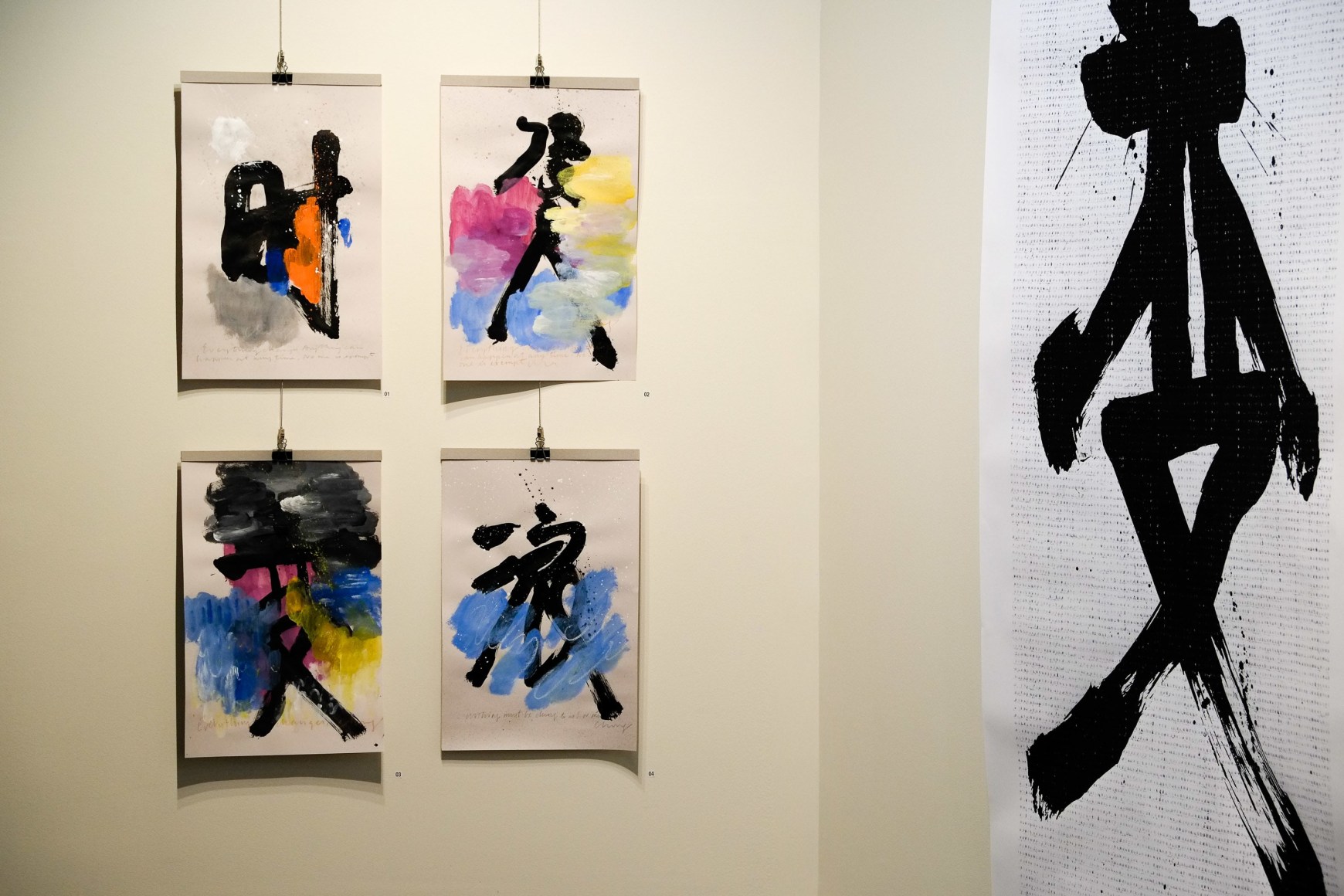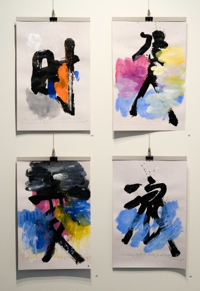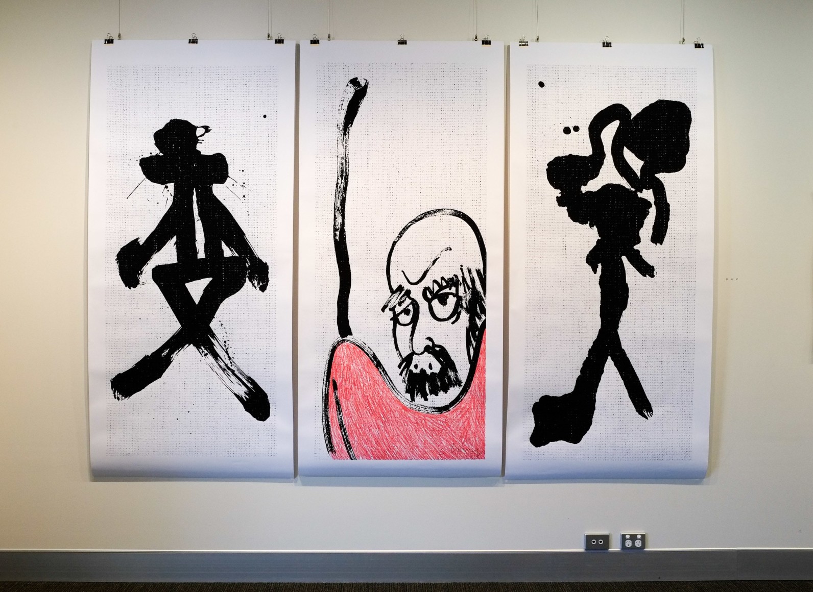 The themes here are change, exile and perhaps, freedom. Change can be seen in the way words (Chinese characters, English script) are transformed into near illegible marks to become abstract expressions, a different kind of sign with only subjective readings. How ink landscapes become groupings of bright coloured shapes. The way digital technology can marry with analogue processes to create a contemporary Chinese scroll. Exile is the great theme of the last hundred and some years and enough has been said about it. I mention exile only because it is undeniable.