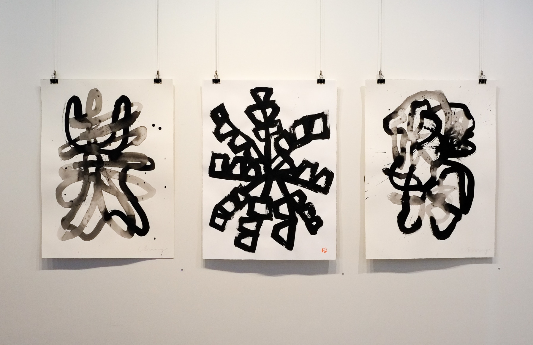 In these works from several ongoing series I drew from the deep well of Chinese art traditions. Useful concepts: the understanding of art’s intangible qualities — its “spirit” — codified 1500 years ago as the most important part of art. The ancient abstractions of Chinese calligraphy, and the deployment of the void as integral to the image. Mark making that speaks of distinctive individuals.
