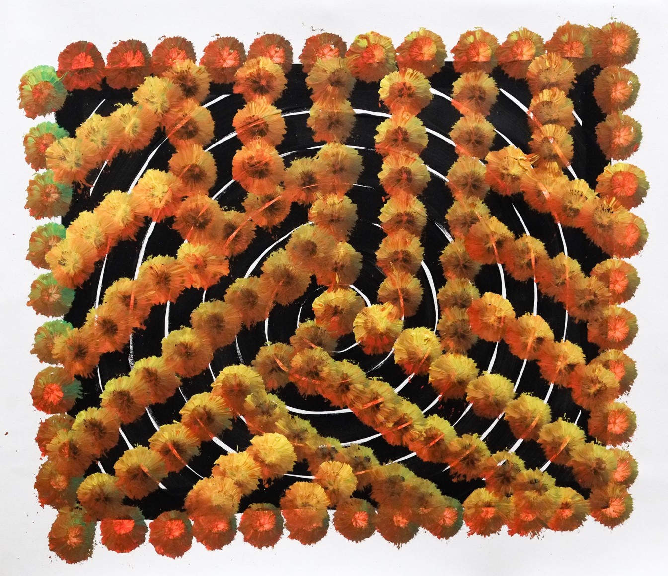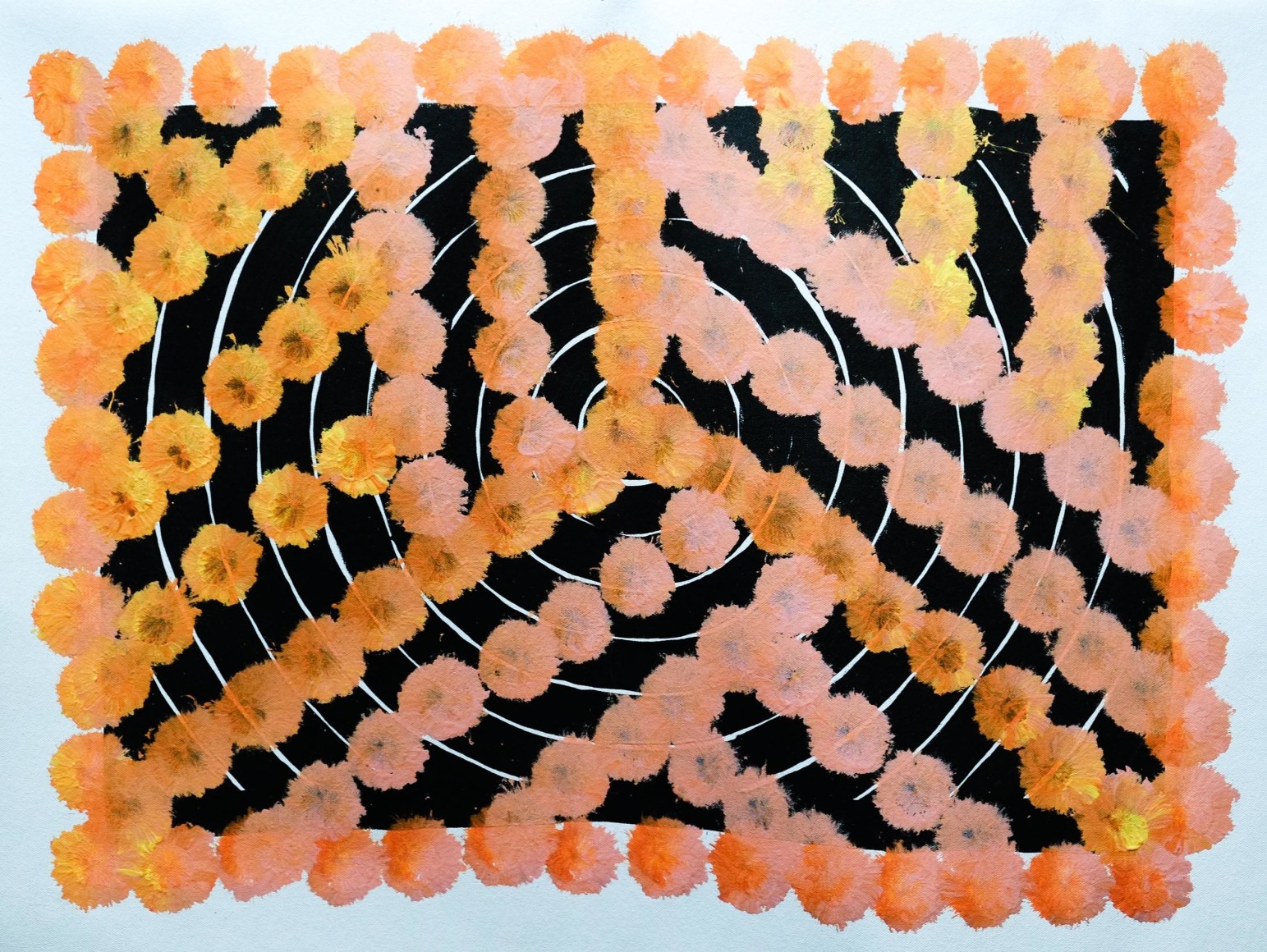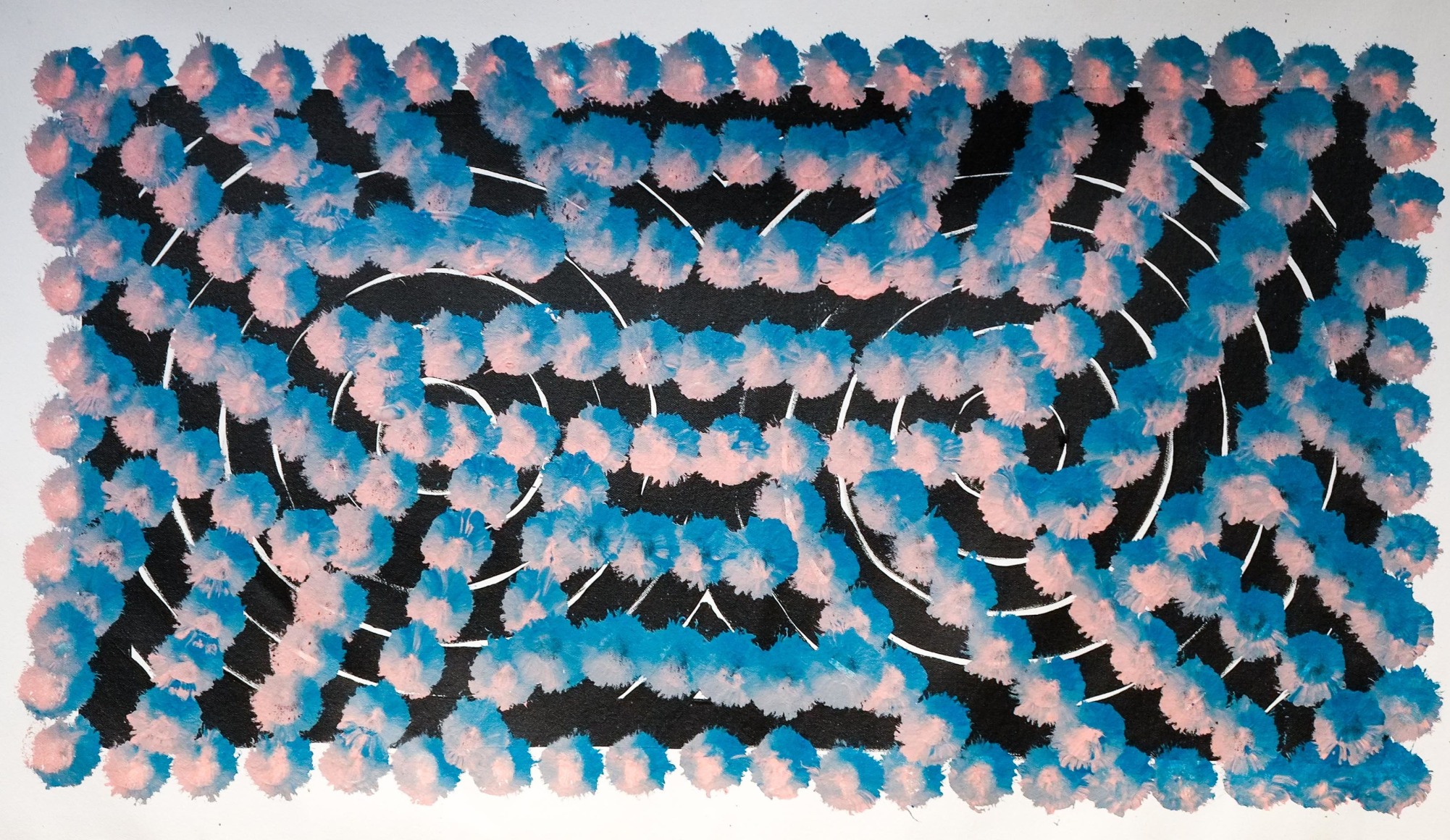 “I paint contemporary indigenous art,” Otis says. “The way I can best explain it is, it’s a broken-down form of traditional symbols and stories that aren’t giving all of it away but just enough for people to understand".