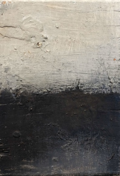 Caitlin Reilly Hymn to the Horizon #16 2017 Oil, bitumen on reclaimed timber door 60 x 45 cm