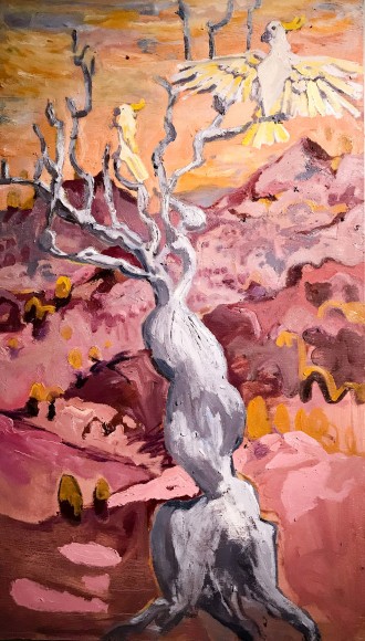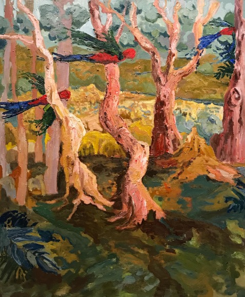 Emily Imeson King Parrots – Time Travel, 2017 Oil on board 120cm x 100cm