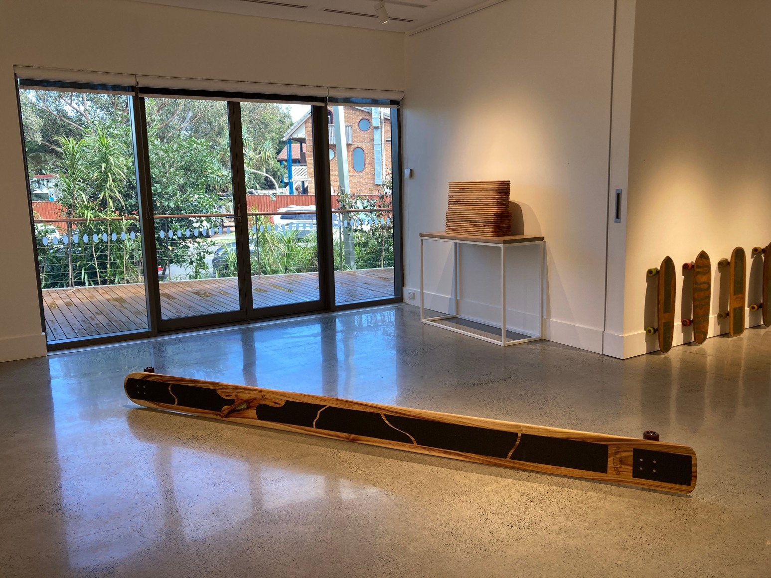Rhythm & Motion is a collaborative project between Byron Bay locals, James Ioannou and Laith McGregor. The initial spark for this idea came to fruition through a casual conversation about skateboarding and shortly thereafter, this common passion evolved into an exciting collusion of ideas. The pair bring together the natural form of the skateboard and a custom artwork that translates concepts of isolation, solace, and patience. Together, they agreed to make a deck featuring an artwork from McGregor, that would contribute to the launch of Ioannou’s skateboard brand Brother Boards, in Australia.
