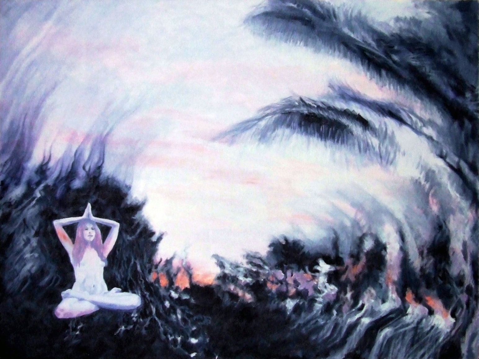 Energy pervades the night in the natural world, encouraging communion and connection. The naked figures in these paintings represent the shedding of doubt and scepticism. It is a metaphor for our mental and spiritual openness and availability to become exposed to a greater force. With this we can become energised and renewed, projecting love, acceptance and unity.