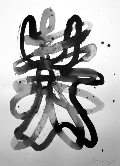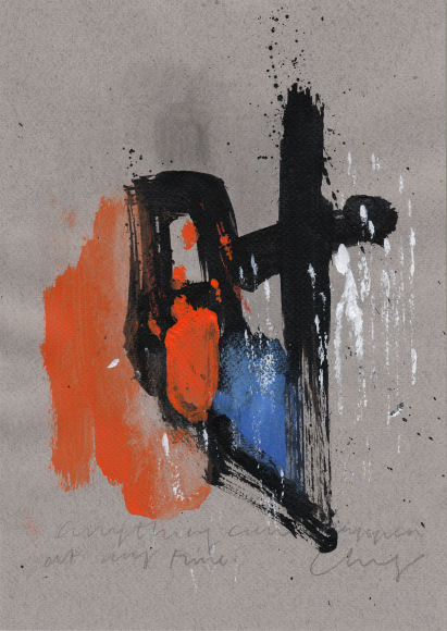 In these works from several ongoing series I drew from the deep well of Chinese art traditions. Useful concepts: the understanding of art’s intangible qualities — its “spirit” — codified 1500 years ago as the most important part of art. The ancient abstractions of Chinese calligraphy, and the deployment of the void as integral to the image. Mark making that speaks of distinctive individuals.